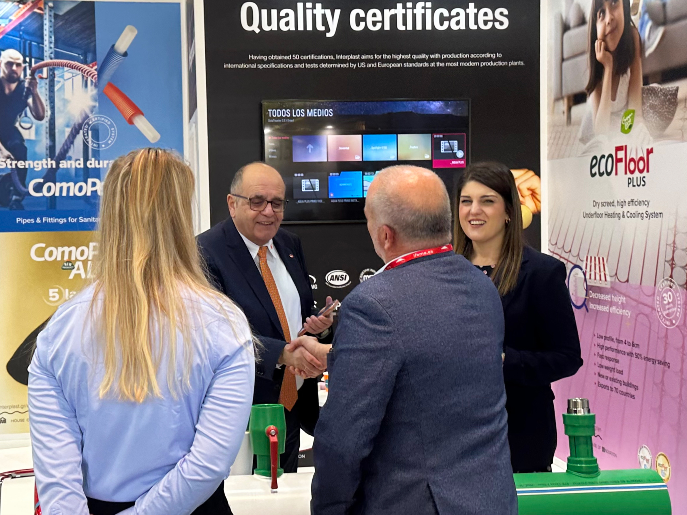 Η Ισπανική αγορά ήδη έχει επιλέξει τα καινοτόμα συστήματα Interplast με συνεργάτες στην Βαλένθια, την Λα Κορούνια και τα Κανάρια Νησιά όπου έχουν προμηθευτεί το ολοκληρωμένο πιστοποιημένο σύστημα πολυπροπυλενίου Aqua Plus και Aqua Plus Prins. Σε μία ποιοτική αλλά και πολύ ανταγωνιστική αγορά η Interplast κάνει πολύ σταθερά βήματα με εγκαταστάσεις σε έργα με προδιαγραφές για τα πράσινα κτήρια βάσει LEAD & BREM αλλά και συστήματα ύδρευσης ελεύθερου μολύβδου .