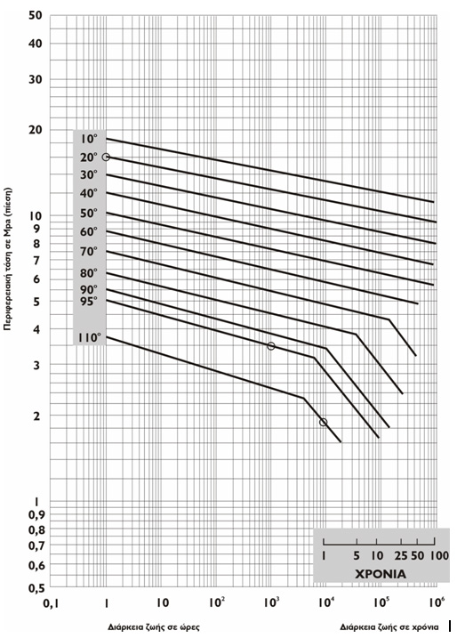 Temperature (oC) | Lifespan (Years) | Pressure (bar) | Safety Factor |